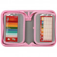 A Spirit Cuki Cica mintás tolltartó tökéletes választás minden kis állatbarátnak, aki szereti az aranyos, vidám és színes iskolai kiegészítőket! A tolltartó elején egy hatalmas szemű, masnis fehér kiscica néz vissza játékosan – vidám rózsaszín háttérrel és apró madárkával kiegészítve, ami garantáltan mosolyt csal gyermeked arcára minden iskolai napon.Ez a kihajtható tolltartó nemcsak cuki, hanem rendkívül praktikus is. 1 cipzárral záródik, belsejében pedig egy igazi kincsesbánya vár: összesen 50 részes, teljesen felszerelt írószertartalommal. A csomag tartalmaz 2 grafitceruzát, 10 színes ceruzát, 12 élénk filctollat, radírt, hegyezőt, vonalzót, 20 tintapatront, egy töltőtoll-sablont, névcímkét és órarendet is – minden egy helyen, rendezetten, gumipánttal rögzítve.A tolltartó tartós poliészterből készült, így jól bírja a napi strapát, miközben könnyű marad a gyerekek számára. Ez a modell ideális alsós lányoknak, akik szeretik a cicákat, a vidám színeket és ha a tanulás is egy kis mókát rejt magában. Tökéletes ajándék is lehet egy iskolakezdéshez vagy egy meglepetésnapra.Jellemzők:50 részes, teljesen felszerelt tolltartóCuki, masnis cica dizájn rózsaszín alaponTartalom: 2 ceruza, 10 színes ceruza, 12 filctoll, radír, hegyező, vonalzó, 20 tintapatron, töltőtoll sablon, órarend, névcímkeStrapabíró poliészter anyagEgy cipzáros, kihajtható kivitel gyerekbarát elrendezéssel