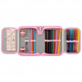 Ez a Spirit márkájú, 50 darabos, kihajtható tolltartó nemcsak aranyos, hanem rendkívül praktikus is – és garantáltan minden kisiskolás szívét megdobogtatja! A borítón egy álomba szenderült, mancsait nyújtó narancssárga kiscica látható, aki nyugalmat és jókedvet sugároz – pont olyan hangulatot, amire egy iskolai napon is szükség lehet. A fehér háttér és a rózsaszín szegély még bájosabbá és figyelemfelkeltőbbé teszi ezt a tolltartót.A tolltartó belseje azonban nemcsak szép, hanem lenyűgözően felszerelt is: összesen 50 praktikus elemet tartalmaz, így gyermekednek nem kell külön beszereznie sem ceruzát, sem színeseket, sem filceket. A tolltartóban megtalálható többek között 2 grafitceruza, 10 színes ceruza, 12 filctoll, radír, hegyező, vonalzó, valamint 20 tintapatron, és egy töltőtoll sablon is – ami ritkaságszámba megy a hasonló kategóriájú termékek között. A kihajtható belső elrendezés átlátható és rendszerezett, így minden írószer a helyére kerül, és nem kallódik el.A strapabíró, poliészter anyag hosszú távon is jól bírja az iskolatáskában való mindennapos pakolást. A cipzáras záródás megbízhatóan összetartja a tartalmát, míg a belső névtábla és órarend segít a szervezettség fenntartásában.Ez a cuki cica mintás tolltartó tökéletes választás a kislányoknak, akik szeretik az állatokat, és örömmel kezdik vele a napot az iskolában. Nemcsak eszköztároló, hanem egy kis örömforrás is a tanulásban!Jellemzők:50 részes, teljesen felszerelt tolltartóAranyos cica minta fehér háttéren, rózsaszín szegéllyelPoliészter borítás, 1 cipzárralTartalmaz: 2 ceruza, 10 színes ceruza, 12 filctoll, radír, hegyező, vonalzó, 20 tintapatron, töltőtoll sablonNévtábla és órarend a belső oldalon